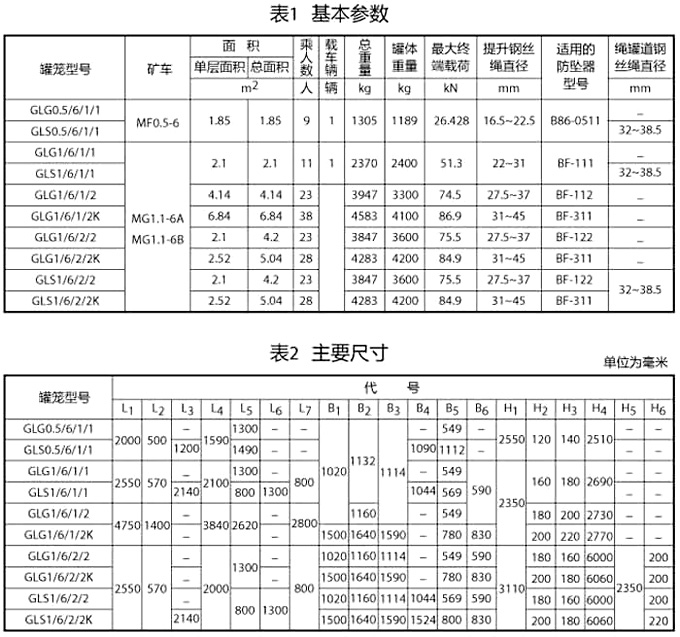 單繩罐籠由楔形連接裝置,抓捕器、罐體、罐內(nèi)阻車器、導(dǎo)向裝置組成,如用于上下人,則必須設(shè)置斷繩保險器(防墜器),抓捕器根據(jù)制動繩布置形式可分為I型(對稱)抓捕和II型(對角)抓捕形式。常用單繩罐籠及配套防墜器的具體型號參數(shù)見附表。