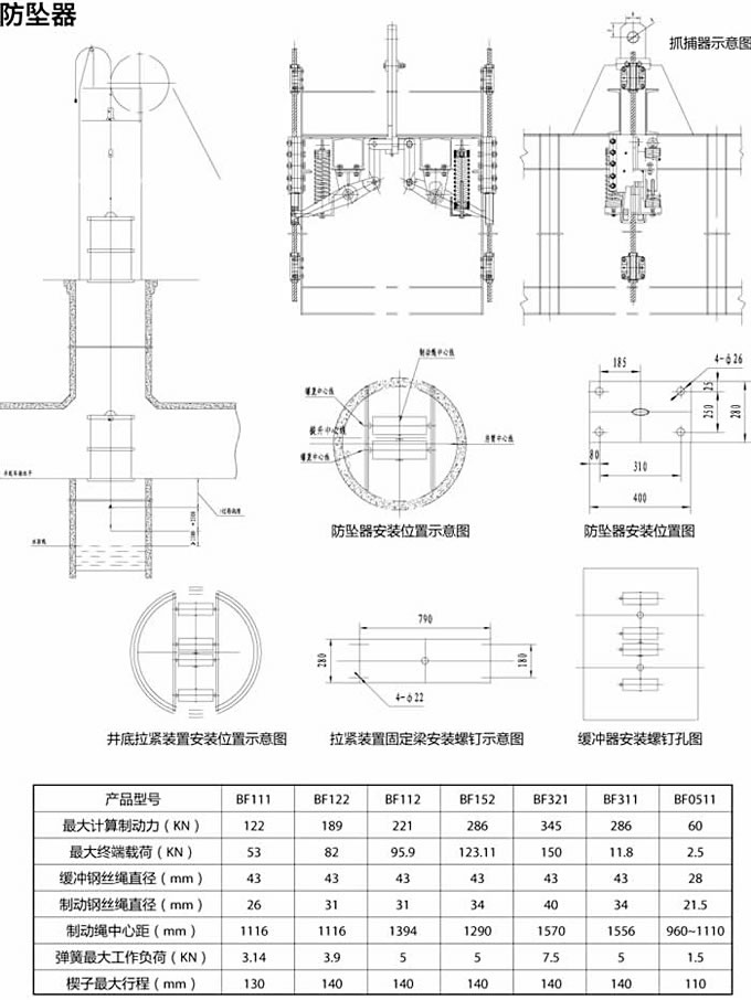 防墜器是單繩提升中的一種重要安全設(shè)備。在提升過(guò)程中,由于某種原因,提升鋼絲繩段繩或連接裝置斷裂,它能自動(dòng)抓住制動(dòng)繩,使罐籠平穩(wěn)停住,不致墜入井底,從而保證人員的安全和提升設(shè)備不致?lián)p壞。