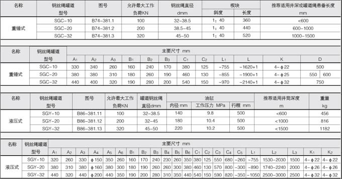 罐道繩液壓拉緊裝置技術(shù)參數(shù)